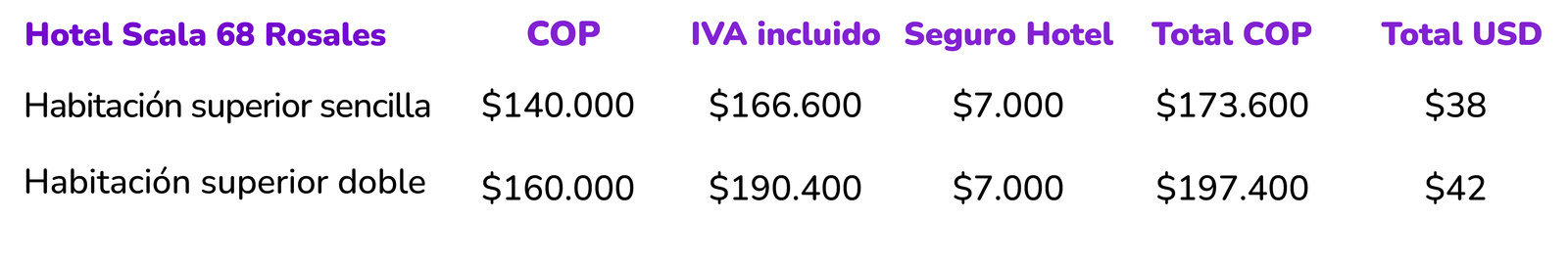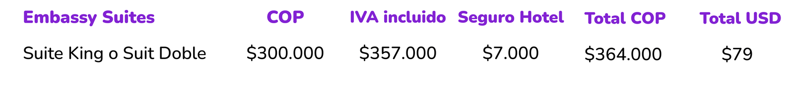 Hemos preparado y realizado una serie de convenios con hoteles en la ciudad de Bogotá en donde